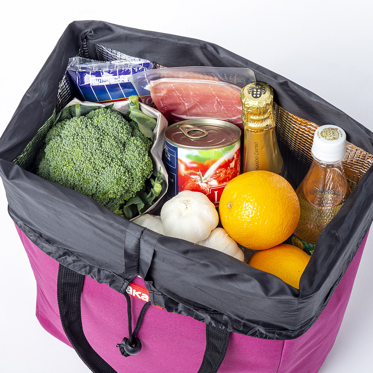 内側はアルミ蒸着仕様で、開口部は巾着付きで中身を隠せます。